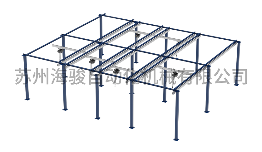 桁架機(jī)械手也叫KBK軌道系統(tǒng),是由懸掛裝置、軌道、道岔、 行走小車、電動(dòng)葫蘆、移動(dòng)供電裝置(滑線)以及控制裝置等組件組合而成。由于該產(chǎn)品只需要簡單的懸掛在廠房鋼結(jié)構(gòu)或龍門鋼結(jié)構(gòu)上通過提升設(shè)備便可實(shí)現(xiàn)物料的空中直接輸送,因此被廣泛應(yīng)用于各行各業(yè)的物料輸送環(huán)節(jié)。